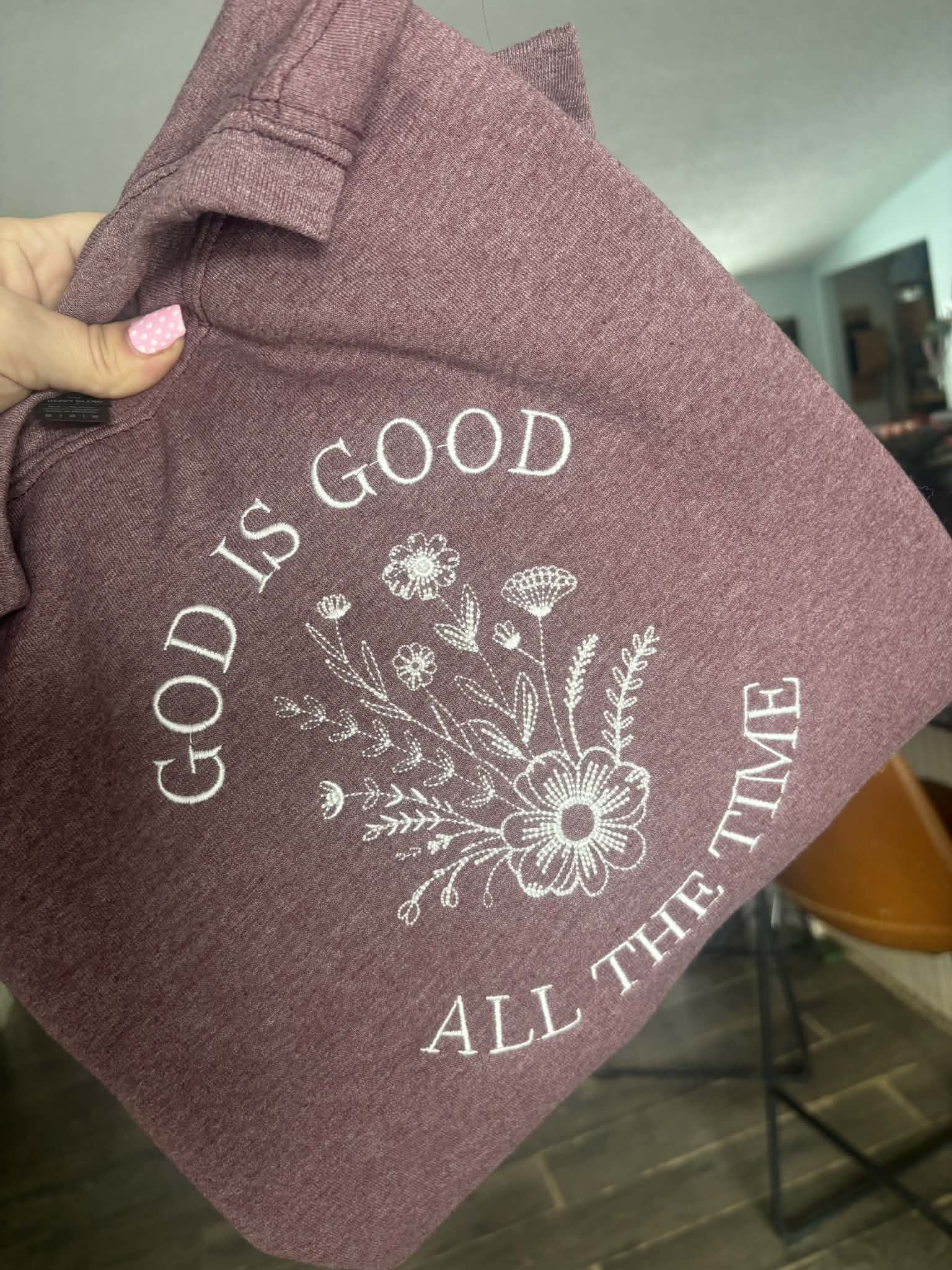 Beautiful God is good all the time with flower details.