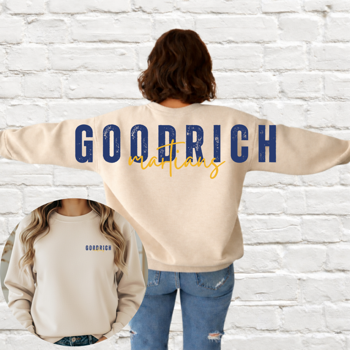 These designs only work on long sleeves like a crew or hoodie. (Long sleeve tees work too!)